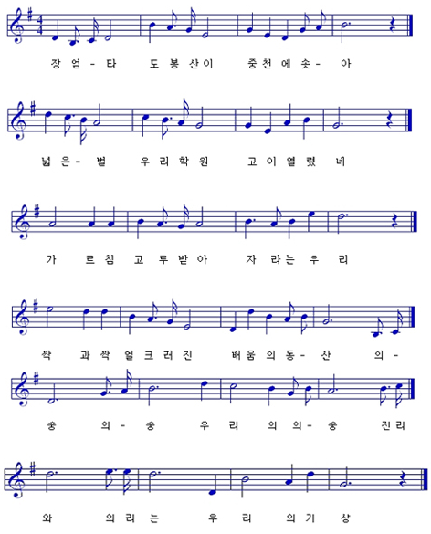 충(忠) - 인간의 중심, 자신에게 성실함. 조국과 민족을 위해 신명(身名)을 바침