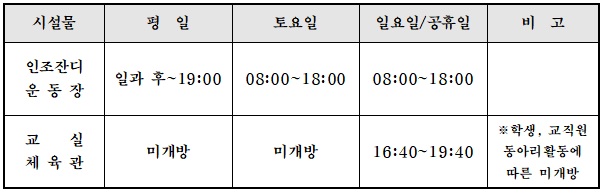 의정부중학교의 시설별 일시 개방